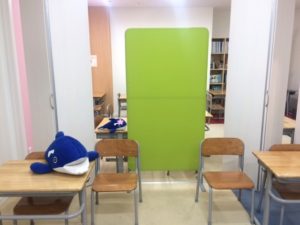 お互いの声が聞こえたり、ちらりと姿が見えたりして、子ども達は以前とは違った環境の中で学習しています。