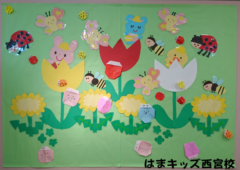 本日から4月! 春らしい気候の中、はまキッズでは休講明けの生徒様で賑わっています。 はまキッズ西宮校では壁面も...